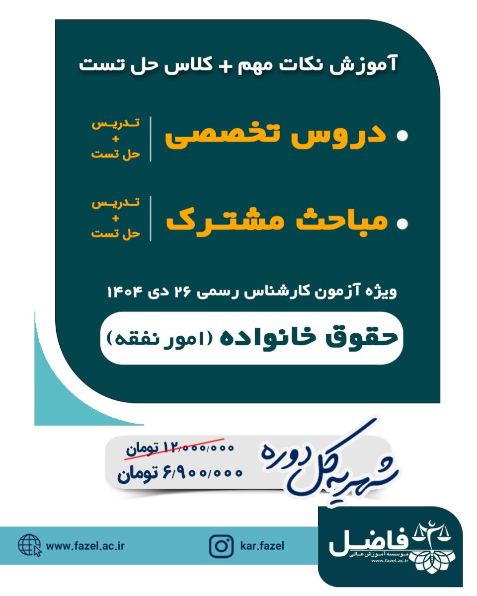 تدریس صفر تا صد + حل تست دوره بینظیر و جامع کارشناسی رسمی امور خانواده (نفقه)